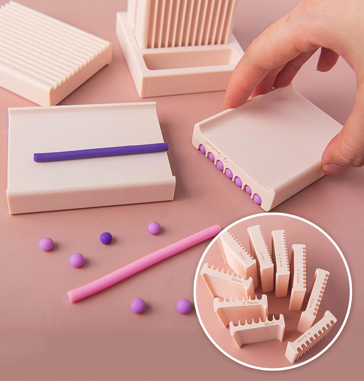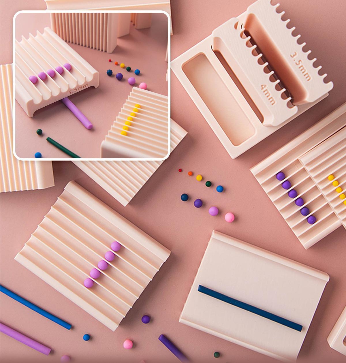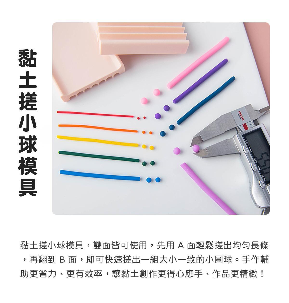 黏土搓小球模具,雙面皆可使用,先用 A 面輕鬆搓出均勻長條,再翻到 B 面,即可快速搓出一組大小一致的小圓球。手作輔助更省力、更有效率,讓黏土創作更得心應手、作品更精緻!